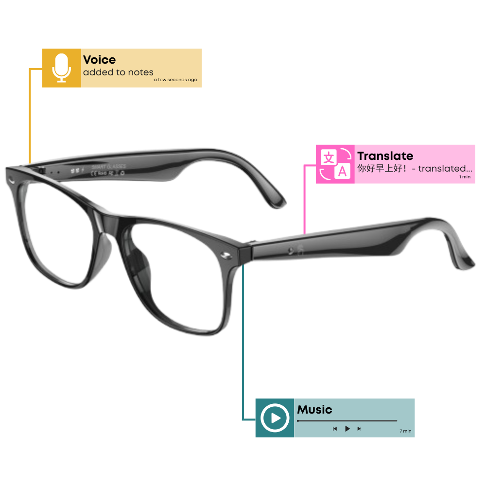 The glasses that hear, speak, translate, and capture—so you stay present.